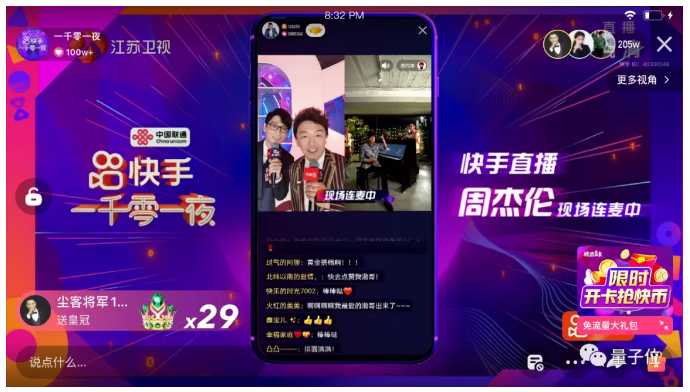 一方面,快手与江苏卫视携手,台网联动,在节目内核和呈现形式上实现了大小屏的深度融合。不只是实时隐身特效,还有黄渤跟周杰伦的低延时连麦、虚拟技术加持下的F4隔空同台等黑科技,都给观众带来了新的观赏体验。