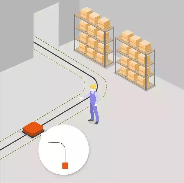 1. 导引技术:地面铺设导引线(电线、色带、磁条等),机器人能够沿固定的导引线移动。