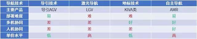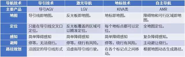 导航技术有很多种,这里只讨论应用最多的几类(这里从比较纯粹的角度对几种常用的导航技术进行概括对比,而实际AGV产品中大多会多种技术混合,以弥补单项技术的不足,满足场景的需求)。