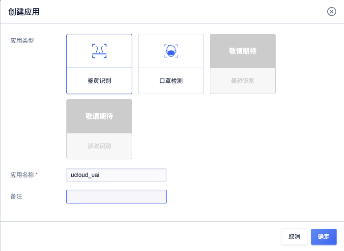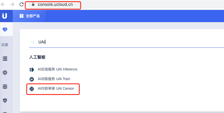 获得应用 ID 进行鉴黄 API 调用的时候使用,注册成功以后进入控制台,搜索 UAI,然后点击 AI 内容审核