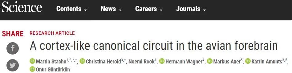 [1] Martin Stacho et al., (2020) A cortex-like canonical circuit in the avian forebrain. Science. DOI: 10.1126/science.abc5534