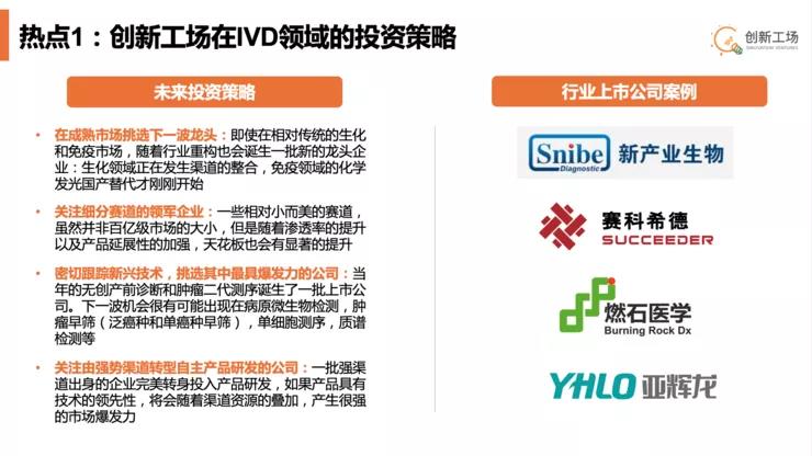 在生化和免疫检验市场,创新工场的投资布局将围绕两种类型企业: