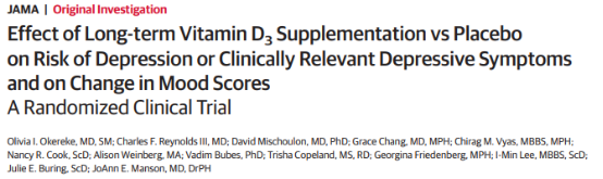 2. JAMA :维生素D不能预防抑郁症,而序贯心理联合治疗有望预防抑郁症