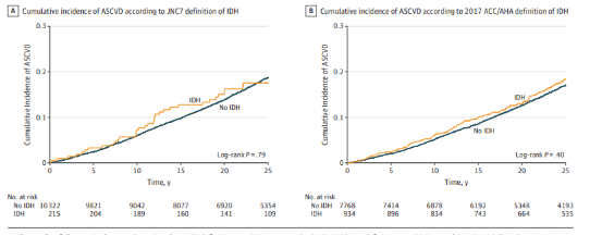 1月28日,约翰霍普金斯大学医学院发表在JAMA上的研究指出新的IDH定义可能不妥当。研究人员发现,如果收缩压低于130 mmHg,而仅舒张压≥80 mmHg时,动脉粥样硬化性心血管病、心衰、慢性肾脏病、心血管死亡、全因死亡风险并不会显着增加。同时,根据旧诊断标准诊断的单纯舒张期高血压,也与上述不良事件风险也无明显关联。