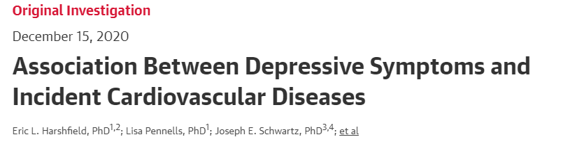 抑郁症状与冠心病、脑卒中、心血管疾病的关系. doi:10.1001/jama.2020.23068