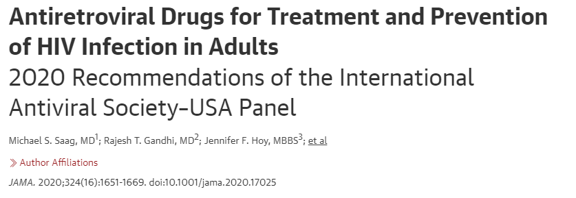 7. JAMA:2020年IAS-USA指南更新了针对HIV治疗和预防的建议