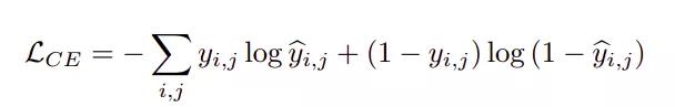 采用二元交叉熵和dice损失相结合的方法对网络进行训练。第一部分二元交叉熵是分类问题中常用的损失函数,如下式所示:
