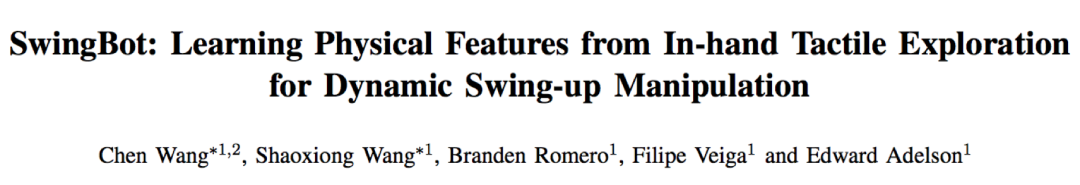 这项研究来自于麻省理工学院(MIT)与上海交通大学的暑期联合项目,论文题目为 “SwingBot: Learning Physical Features from In-Hand Tactile Exploration for Dynamic Swing-up Manipulation”(SwingBot:从手部触觉探索中学习物理特征,以实现动态摆起操作)。