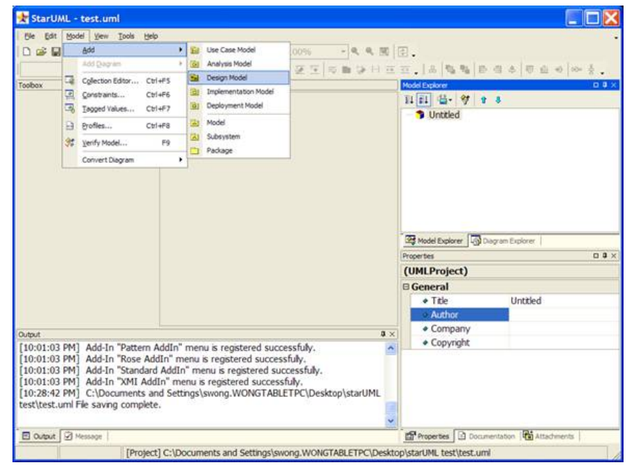 通过“Model”主菜单,或右击选定的模型,可以" Add/Design Model "